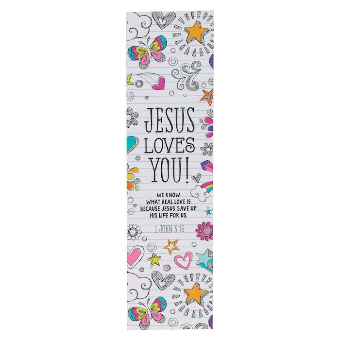 Bookmark-Notebook Doodles/Jesus Loves You 1 John 3:16 is backordered and will ship as soon as it is back in stock.