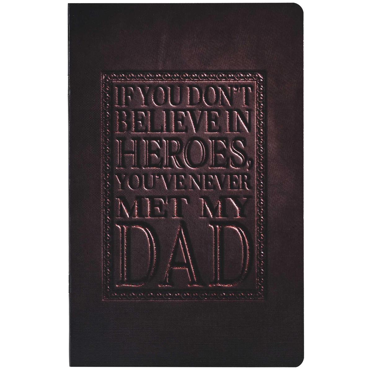 Set Of 3 Notebooks. Each Notebook Has 64 Lined Pages With 3 Assorted Designs In One Bag. Size: 5-1/2 X 8-1/2. Covers Feature Text: My Dad - Fun, Smart, Strong, Fair, Sweet, The Best; If You Do Not Believe In Heroes You Have Never Met My Dad; Number 1 Dad In The World. Comes Packed In A Polybag.