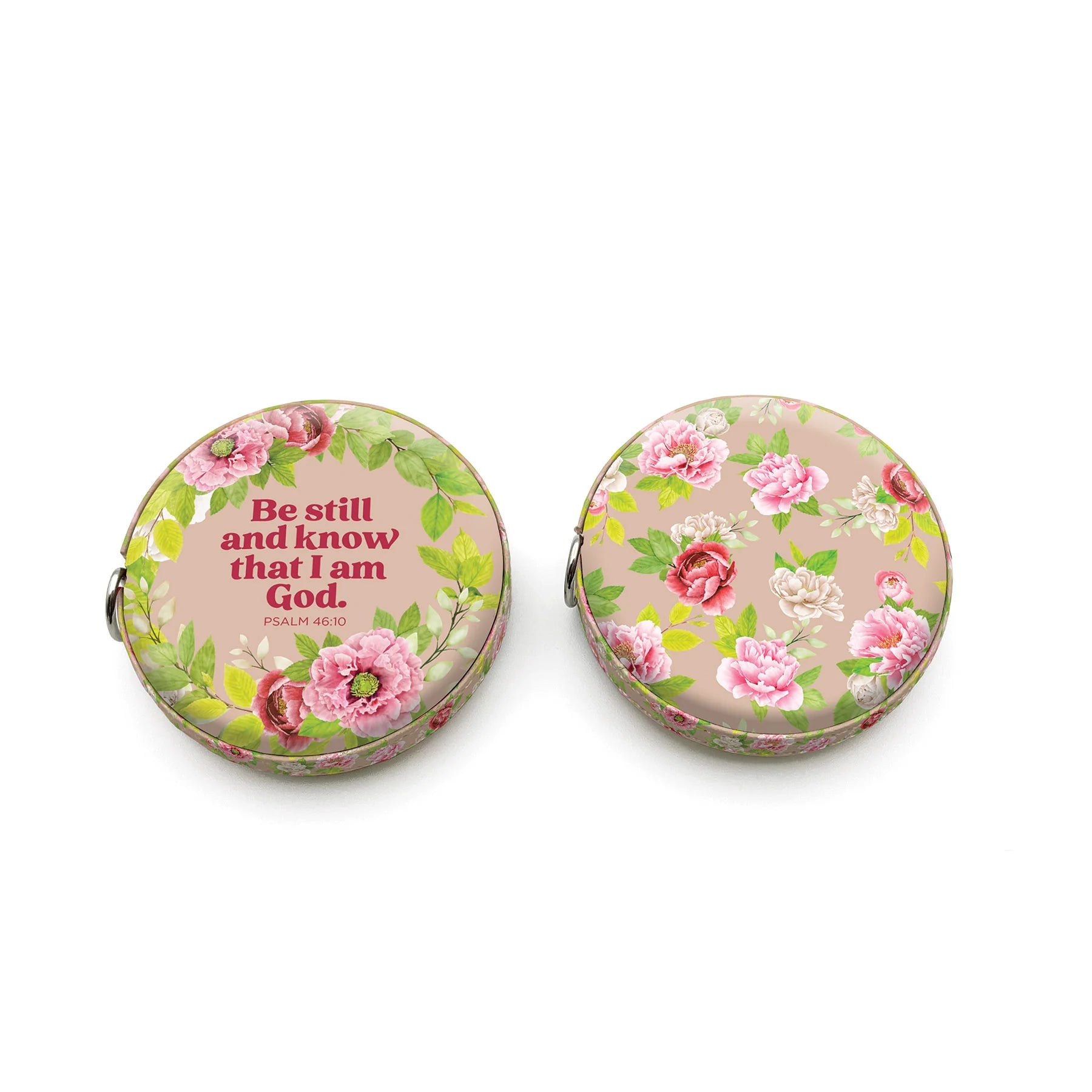 These full color scripture tape measures include a 60 inch flexible tape measure (150 centimeters on reverse) that retracts with the touch of a button located in the middle of the case.