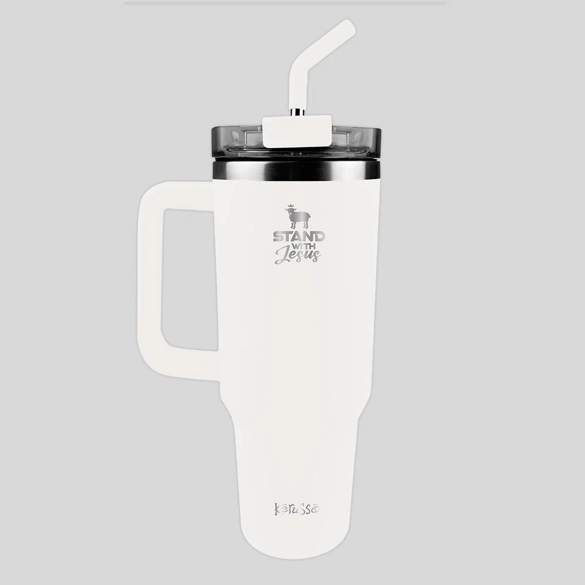 Kerusso® 40 oz Stainless Steel Mug With Straw - Stand With Jesus