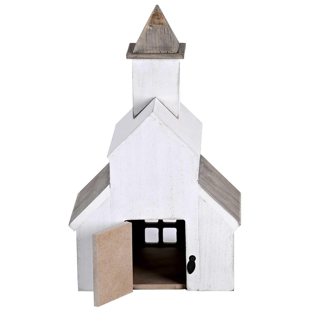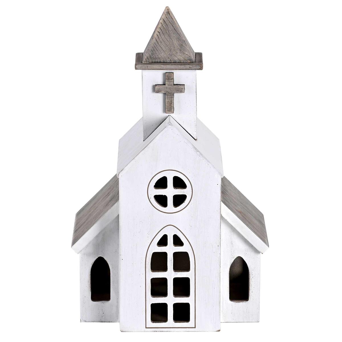 This Piece Captures The Serene Essence Of A Traditional Country Church, Highlighted By A Delicate Cross Prominently Positioned At The Top. The Church Features A Removable Steeple, All Constructed From Durable Wood. It Measures 12 Inches In Height, 7.5 Inches In Width, And 6 Inches In Length. The Piece Showcases A Distressed Painted Finish And Is Crafted From Wood.