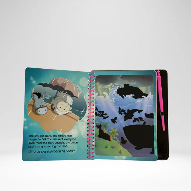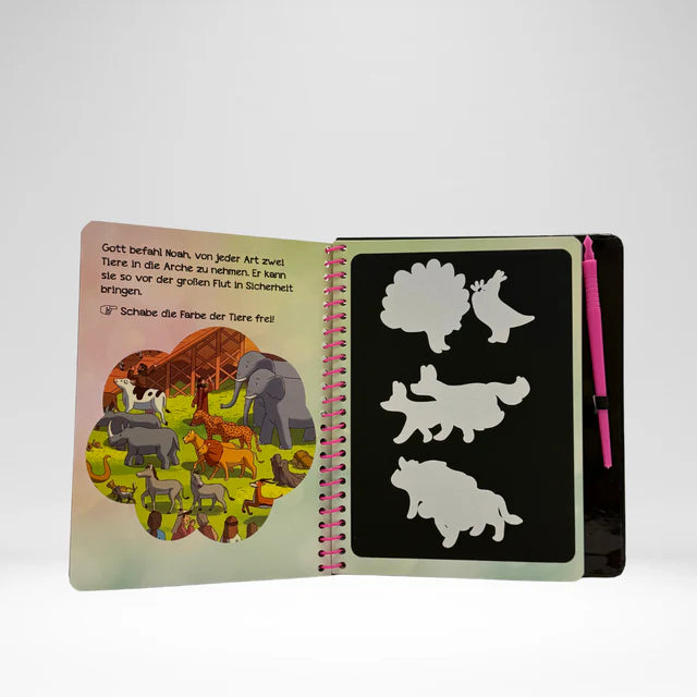 My Scratch Bible is a fun, hands-on Bible activity book for kids aged 4+. Each story is paired with a scratch-off activity that brings faith to life—revealing vibrant images or shiny metallic patterns hidden beneath black ink!