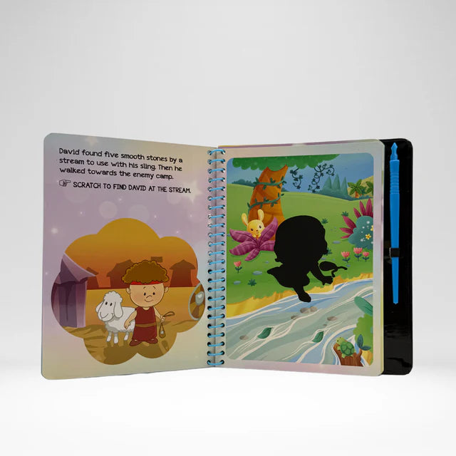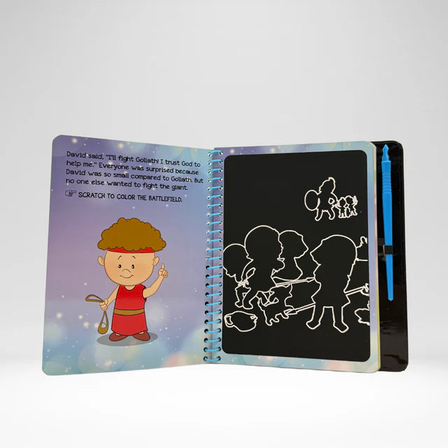 My Scratch Bible is a fun, hands-on Bible activity book for kids aged 4+. Each story is paired with a scratch-off activity that brings faith to life—revealing vibrant images or shiny metallic patterns hidden beneath black ink!