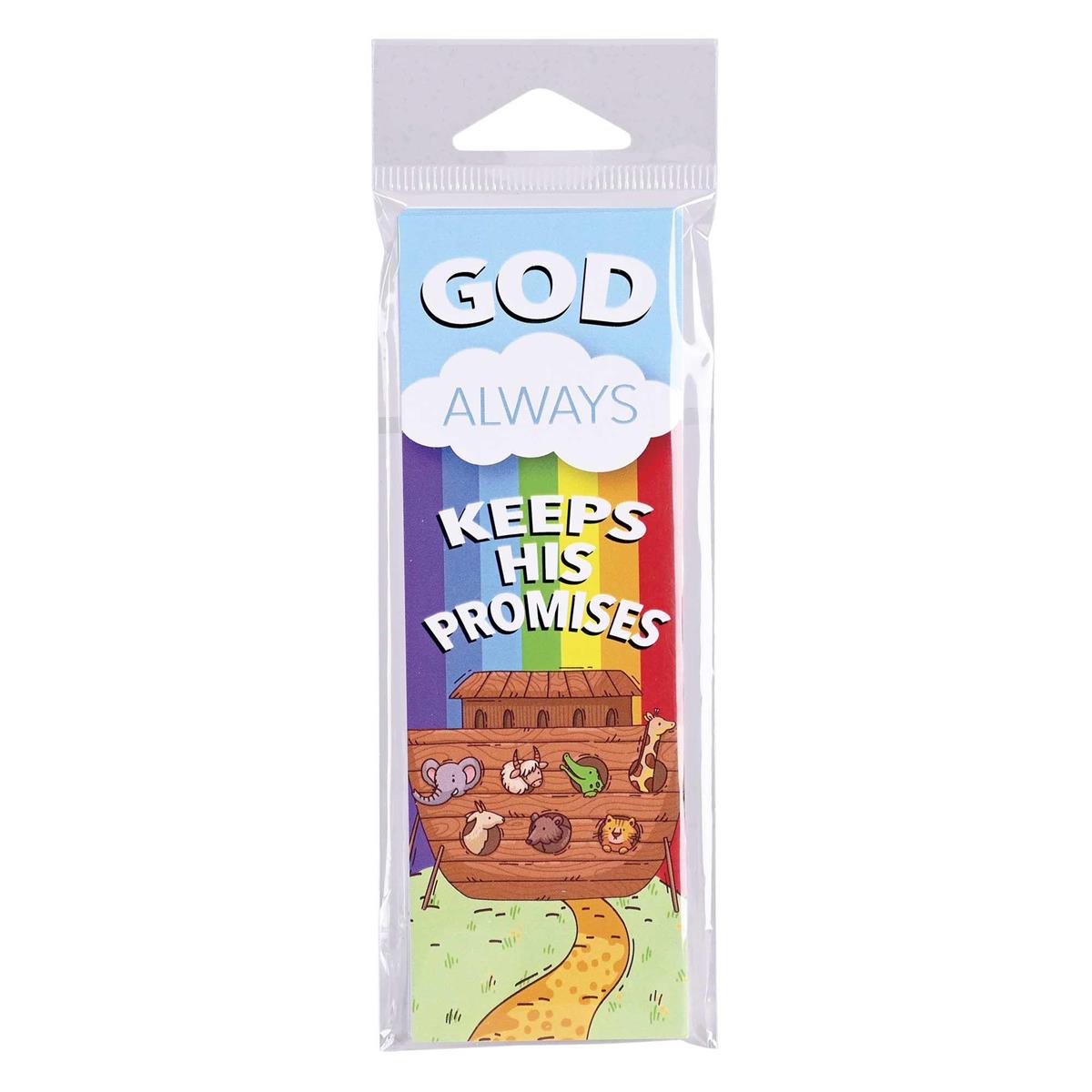 12 Bookmarks Per Pack - 1-3/4 X 5-1/4 H. This Noahs Ark Themed Bookmark Features Text: God Always Keeps His Promises. Printed In USA.